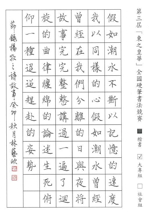 - 國立東華大學《硬筆書法潛能開發課程》講師(106-110年)